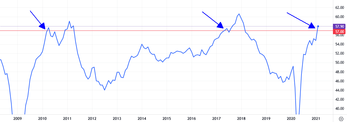 Euro Area Manufacturing PMI >= 57