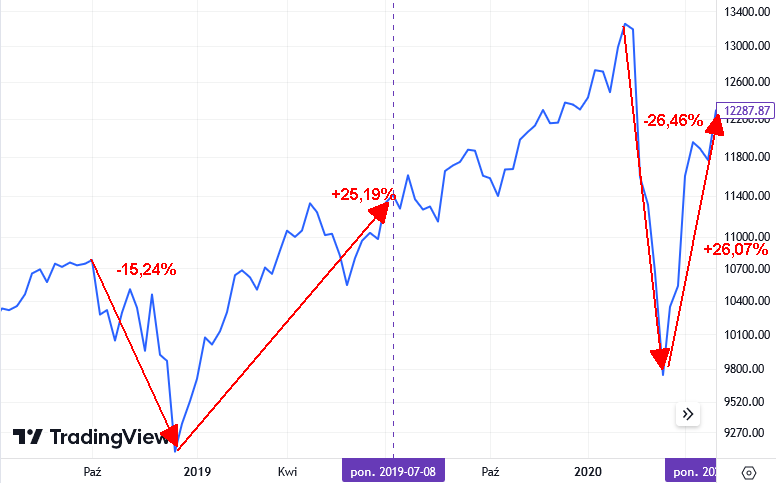 S&P 500 w PLN: wzrost >= 25% od dna korekty